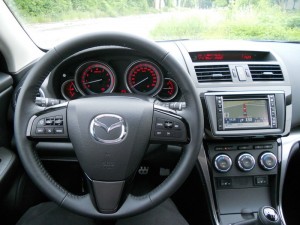 Der Mazda6 „Edition 40 Jahre“ auf Basis der Ausstattungslinie Exclusive-Line verfügt zusätzlich über das integrierte SD-Navigationssystem und eine Einparkhilfe für Fahrzeugfront und -heck. Foto: Auto-Medienportal.Net