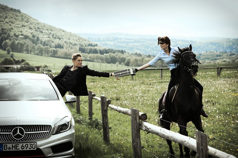 Begleitet wird die Kinotour von einem A-Klasse Autokorso, bei dem 10 Fahrzeuge in auffallender mit Worten wie „SchlussmAcher“ oder „LiebhAber“ beklebt sind und so die Blicke auf sich ziehen sollen. Foto: Auto-Medienportal.Net/Daimler