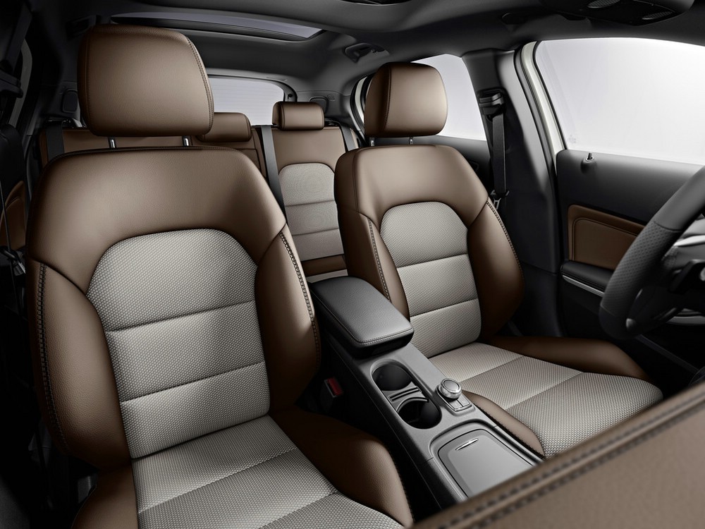 Mercedes-Benz GLA Edition 1 – Im Innenraum verfügt das Sondermodell exklusiv über Sitze in Leder nussbraun und Stoff Alvorada mit markanten Mokassinnähten. Foto: Auto-Medienportal.Net/Daimler