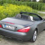 Unser Exemplar trug die Lackierung Design Magno (Aufpreis 5510), ein mattes Dunkelgrau, das diesen Eindruck von mehr Männlichkeit überdeutlich unterstreicht. Man gewöhnt sich an diese Farbe nicht nur, man entwickelt mehr Respektvor dem SL. Sie passt zu ihm und wirkt auch ganz beachtlich auf die Umwelt.
