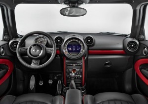 Mini John Cooper Works Paceman – Den Innenraum des Viersitzers prägt ein Sportwagen-Ambiente mit Kontrastnähten und Sport-Button auf der Mittelkonsole, der das Ansprechverhalten und die Soundentwicklung des Motors sowie die Kennlinie der Lenkkraftunterstützung beeinflusst. Foto: Auto-Medienportal.Net/Mini