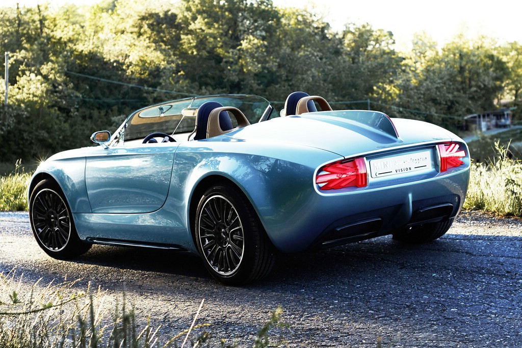Wie bei jedem MINI befinden sich die Räder weit außen an der Karosserie und versprechen hohe Agilität. Insgesamt wirkt das MINI SuperleggeraTM Vision sportlich, elegant und dynamisch. Foto: BMW/ dpp-AutoReporter