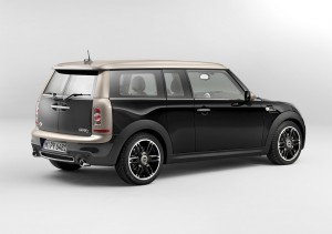 Der Clubman Bond Street kommt in der Farbe „Midnight Black metallic“, die mit der Kontrastfarbe „Cool Champagne“ für das Dach, die Außenspiegelkappen, die unteren C-Säulen und die Motorhaubenstreifen kombiniert ist. Foto: Auto-Medienportal.Net/Mini
