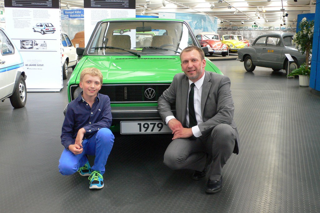 Sonderausstellung „40 Jahre Golf. Die frühen Jahre“: Jan H. Weychardt mit Sohn Lewin Conrad. Foto: Auto-Medienportal.Net/Westermann
