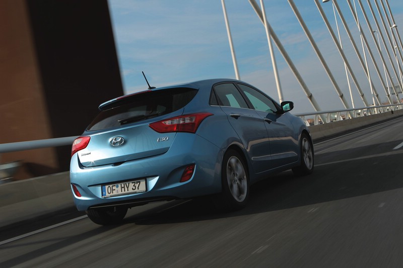 Hyundai i30 – Der Fahreindruck, der mit einem i30 Benziner und einem Diesel (bei 1.6 l) auf ein und demselben Rundkurs über jeweils gut 100 Kilometern gewonnen wurde, gab zunächst Aufschluss über das Fahrwerk, das jeder Art „Fahrbahn“ gewachsen zu sein scheint. Selbst hart gefordert, erfüllt es noch Komfortansprüche. Foto: Hyundai/Auto-Reporter.NET