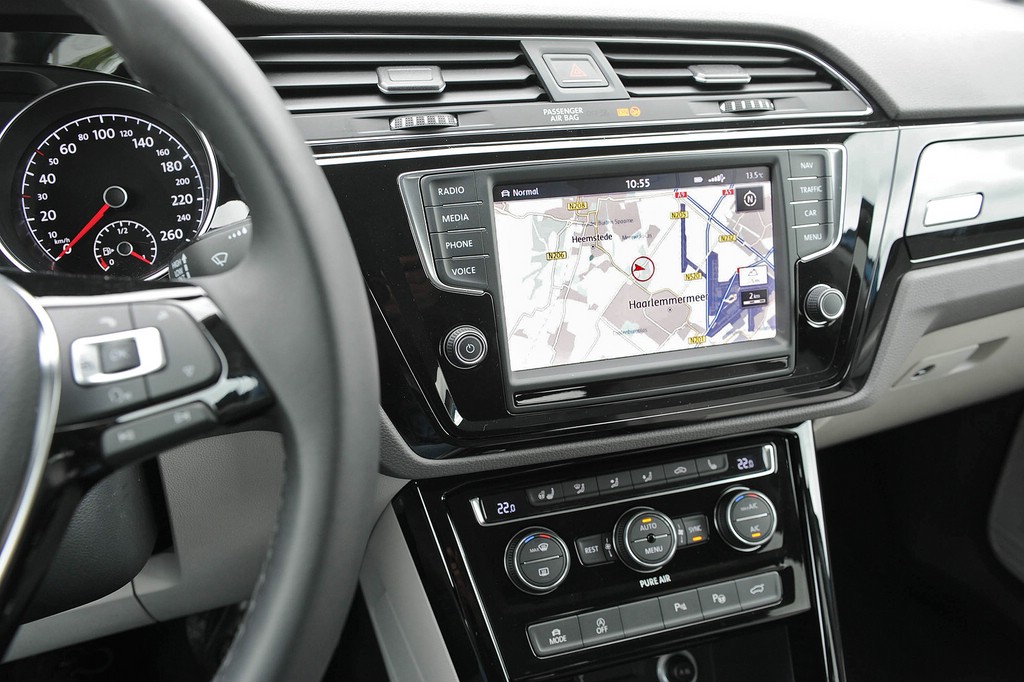 Fünf Infotainmentsysteme: Serienmäßig ist der Touran in den Ausstattungslinien „Trendline“ und „Comfortline“ mit dem Radiosystem „Composition Touch“ (5,0-Zoll-Monochrom-Touchscreen) ausgestattet. Im Touran Highline kommt serienmäßig die nächste Ausbaustufe des MIB II zum Einsatz: das Radiosystem „Composition Colour“ (5,0-Zoll-Farb-Touchscreen, u.a. plus CD-Laufwerk). Darüber hinaus steht das Radiosystem „Composition Media“ (6,5-Zoll-Farb-Touchscreen, u.a. plus Bluetooth-Schnittstelle und Annäherungssensorik) zur Verfügung. In der nächsten Ausbaustufe bietet Volkswagen den Touran mit dem Radio-Navigationssystem „Discover Media“ an, das gegenüber dem „Composition Media“ zusätzlich über das Navigationsmodul verfügt. Zur nochmals erweiterten Ausstattung des Radio-Navigationssystems „Discover Pro“ gehören unter anderem ein DVD-Laufwerk, eine 64 GB große SSD-Festplatte und ein 8,0-Zoll-Farb-Touchscreen.