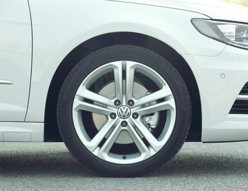 Zum R-Line-Paket gehören u.a. Leichtmetallräder, lackiert in Sterlingsilber, und Mobilitätsreifen 235/45 R 17 (selbstversiegelnd). Foto: VW/Auto-Reporter.NET