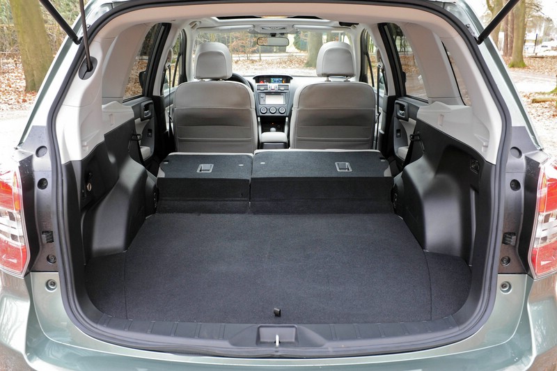 Subaru Forester 2013 – Pluspunkte gibt es für den Kofferraum, der um 55 auf insgesamt 505 Liter vergrößert wurde. Bei schnell umgelegter Rücksitzbank vergrößert sich das Volumen auf stattliche 1.007 Liter, das zudem leicht zu beladen ist. Foto: UnitedPictures/Auto-Reporter.NET
