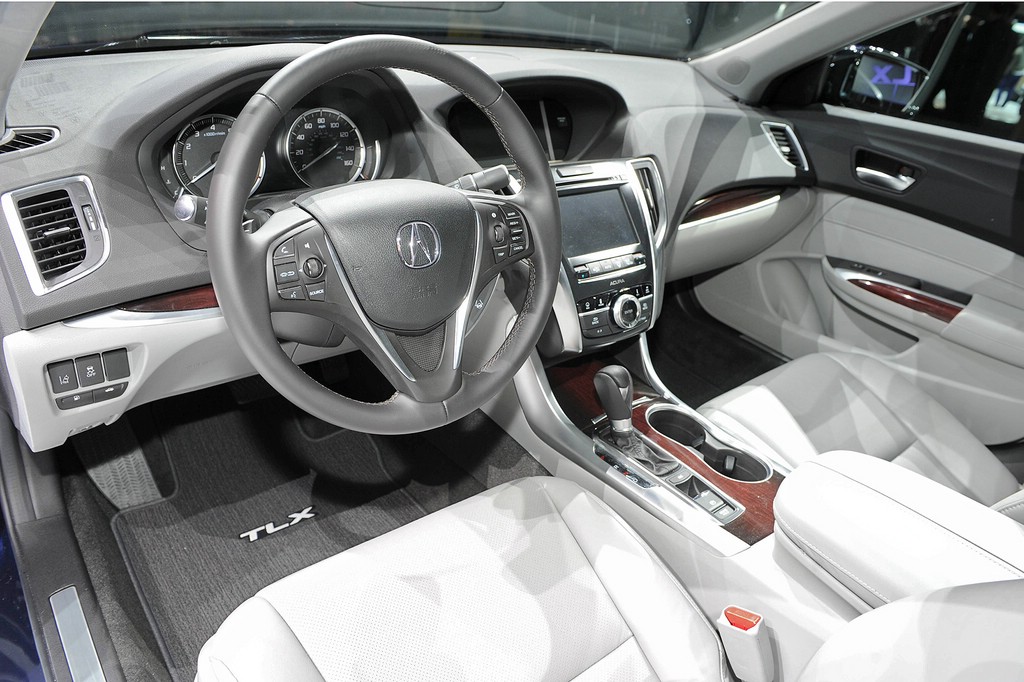 Im Inneren des 2015er Acura TLX gibt es beheizte und belüftete Vordersitze, Bluetooth-Anbindung, Startknopf, Navigation, ein 455- Watt-Audiosystem und das Acuralink Cloud-basierte System. Foto: dpp-AutoReporter