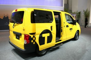 Der Nissan NV200 Yellow Cab bietet Platz für drei Fahrgäste, die bequem durch die Schiebtüren einsteigen können. Foto: Auto-Medienportal.Net