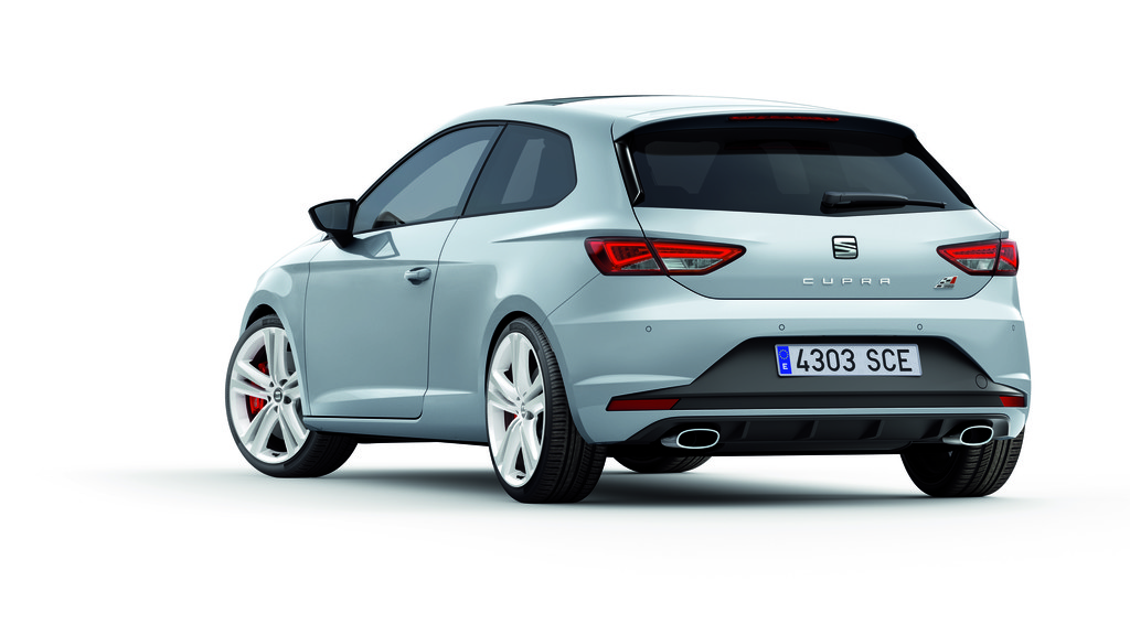 Seat Leon Cupra 280: Das „White Line“ Paket bietet folgende Fahrzeugteile in weißer Lackierung: Rahmen Frontgrill, Außenspiegel, Cupra-Schriftzug auf der Heckklappe sowie die 19 Zoll Leichtmetallräder. Foto: Auto-Medienportal.Net/Seat