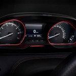 Den Innenraum prägt eine Kombination von Rot, Schwarz und satiniertem Chrom. Dezente Ziernähte in Rot wecken Erinnerungen an den 205 GTI. Sie finden sich auf den Sportsitzen, dem Lederlenkrad, der Schalthebelmanschette, dem Lederhebel der Handbremse, der Armaturentafelverkleidung und den Armlehnen in der Türverkleidung wieder.