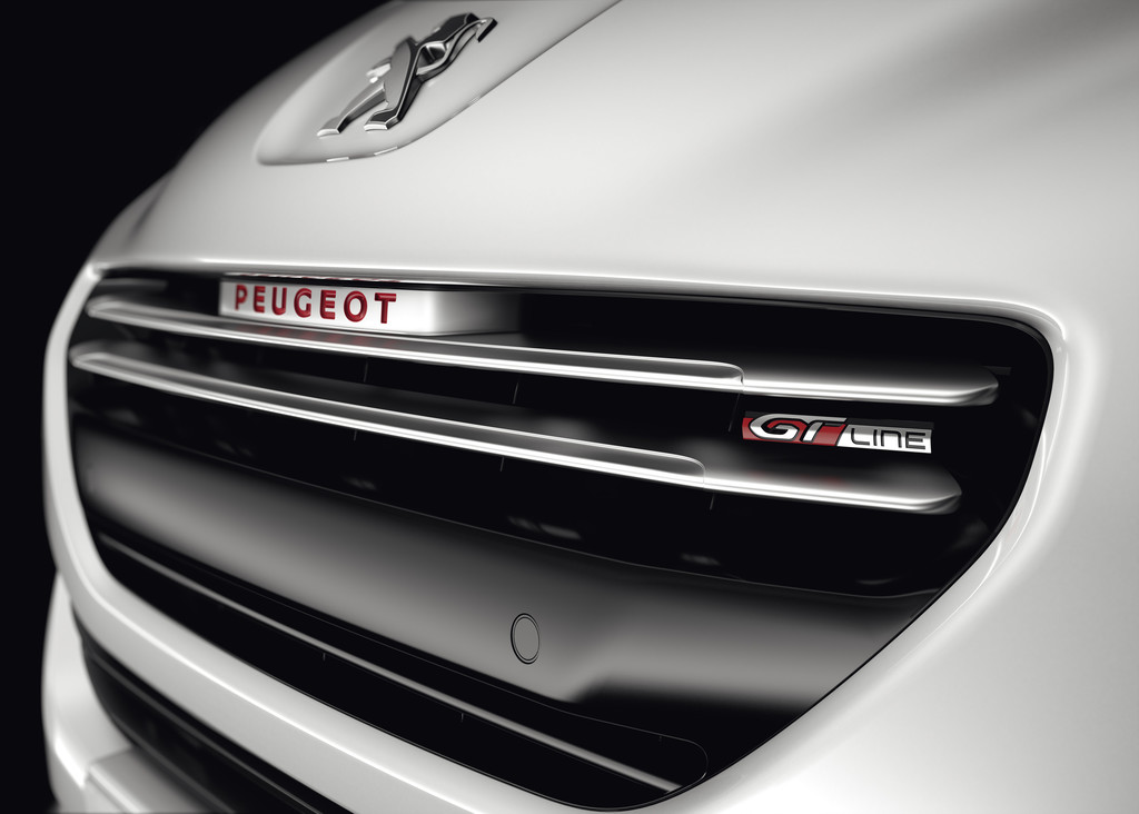 Für mehr Sportwagen-Feeling sorgen beim RCZ GT-Line exklusive Design- und Ausstattungselemente: So verfügt das überarbeitete Modell, das am entsprechenden Logo und dem rot hinterlegten Peugeot-Schriftzug im Kühlergrill zu erkennen ist, ähnlich wie der RCZ R über schwarz lackierte Außenspiegel, zweifarbige 19-Zoll-Leichtmetallfelgen „Le Mans“ in der Lackierung Storm Grey und zwei symmetrische, verchromte Auspuffendrohre. Dem Innenraum verleihen die Polster in dunkelgrauem Alcantara und schwarzem Leder sowie insbesondere die roten Ziernähte an Armaturentafel, Lenkrad, Schalthebel, Fußmatten, Türinnenverkleidung und den Sitzen eine ebenso dynamische Optik.