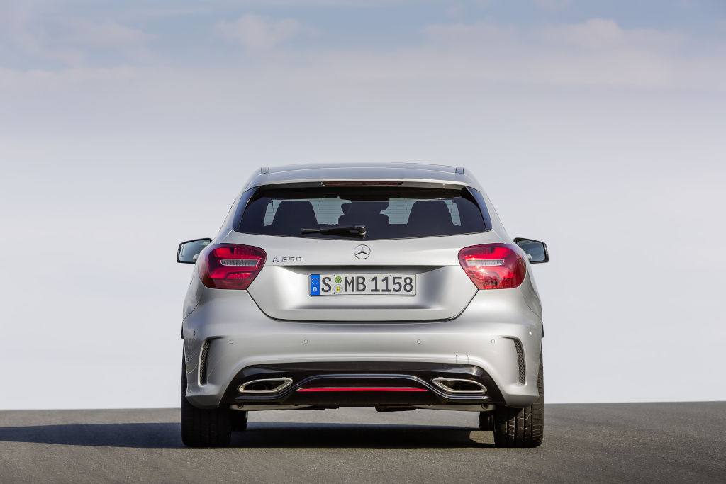 Der neue, stärker gepfeilte Frontstoßfänger ist stark an die Formgebung des Konzeptfahrzeugs Concept A-Class von 2011 und an die AMG-Line der A-Klasse angelehnt. Mit Diamantgrill, neuen LED-Scheinwerfern aus der Aufpreisliste (beim A 45 serienmäßig), neu gestalteten Heckleuchten und integrierten Endrohrblenden betont die neue A-Klasse Sportlichkeit und jugendliche Dynamik. Neue mutige Farben bringen ebenfalls eine neue Frische in die A-Klasse.