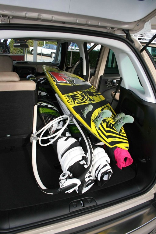Fiat 500L: Für die Neigungsverstellung der Rücksitzlehnen kann ein Stück der Hutablage umgeklappt werden, und eine vermeintlich störende Querstrebe hinter den Rücksitzen verhindert nicht nur, dass nichts unter die Sitze rutscht, sie kann für eine ebene Ladefläche bei hochgeklapptem Gestühl auch einfach herausgenommen werden. Foto: Auto-Medienportal.Net