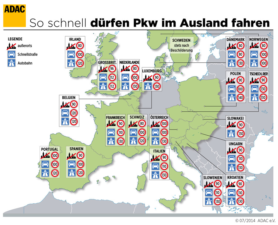 In Europa sind die Tempolimits bekanntermaßen nicht einheitlich geregelt. Autofahrer sollten sich daher vor der Reise über die jeweiligen Geschwindigkeitsbeschränkungen, vor allem in Durchreiseländern, informieren, empfiehlt der ADAC. Dies ist besonders ratsam, da im Ausland oft schon bei geringen Überschreitungen hohe Bußgelder drohen.