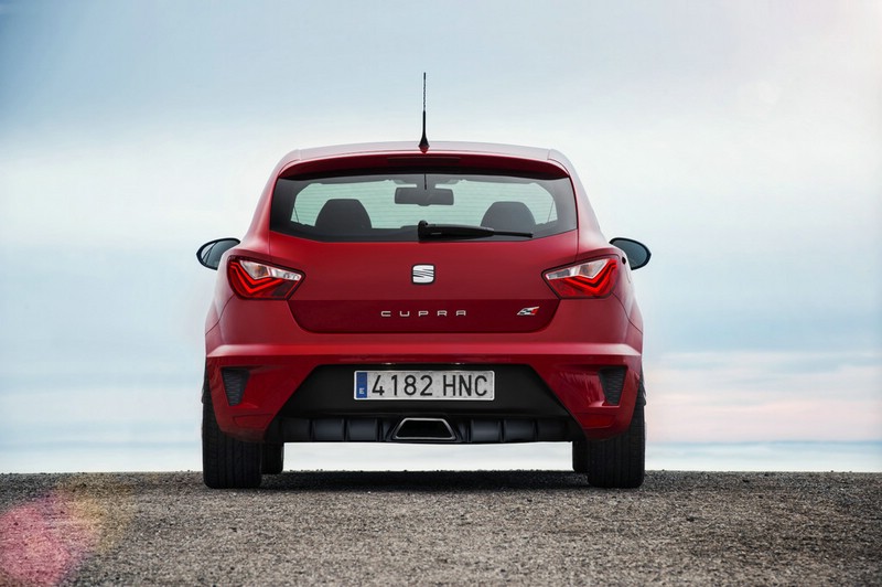 Seat Ibiza Cupra – Am muskulösen Heck rahmt ein breiter Stoßfänger den stattlichen, mattschwarzen Diffusor mit der trapezförmigen Blende des Endrohrs ein. Foto: Auto-Medienportal.Net/Seat