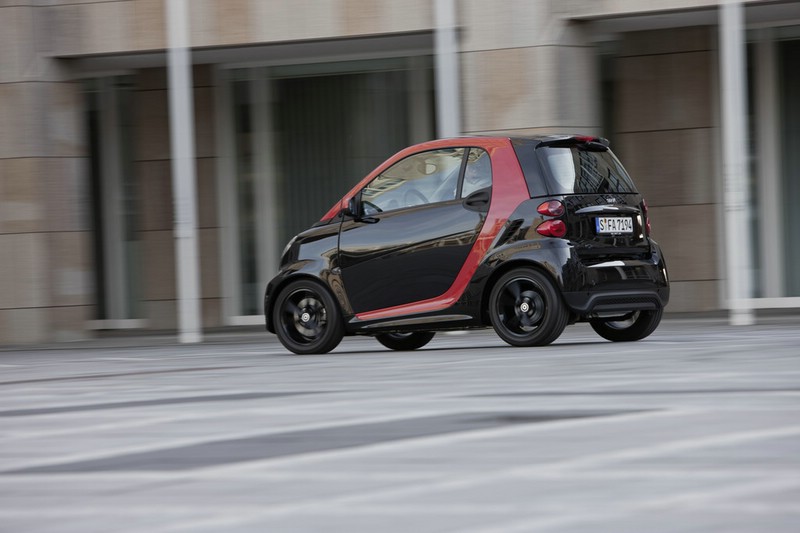 Smart Fortwo Sharpred – Frontschürze und Heckblende sind genarbt und die Seitenschweller tragen schwarzen Glanzlack. Foto: Auto-Medienportal.Net/Daimler