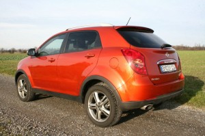 Der Ssangyong Korando tritt bullig auf. Er steht recht hoch und zeigt eine ausgeprägte Schulterlinie, die in einem recht muskulösen Heck mit betont ausgestellten Kotflügeln ausläuft. Foto: Auto-Medienportal.Net