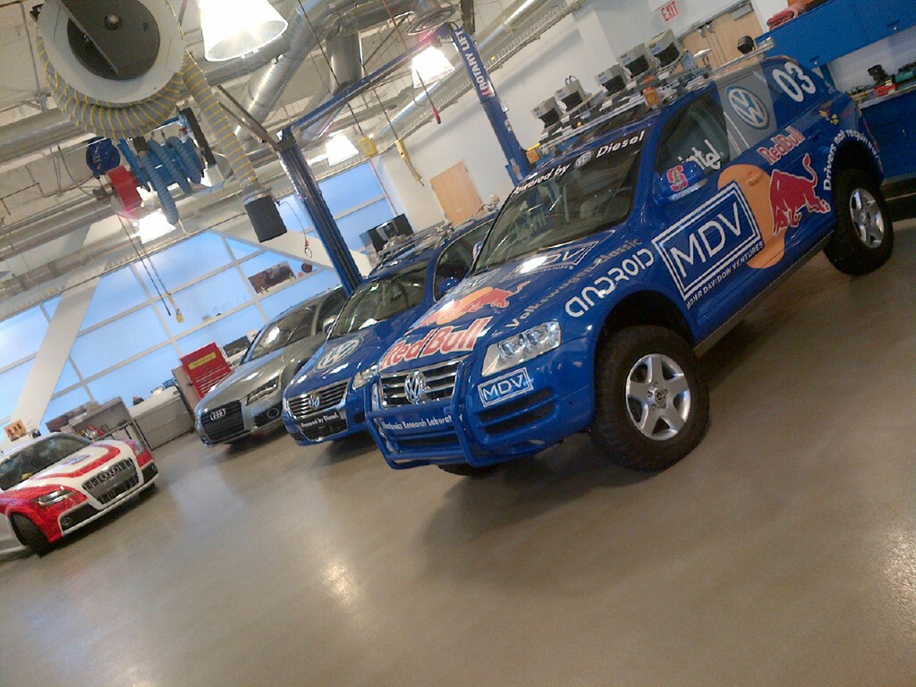 Foto: Autonomes Fahren bei Volkswagen: der Stanley (vorn), der blaue Passat Junior und links der Pikes Peak-TT.