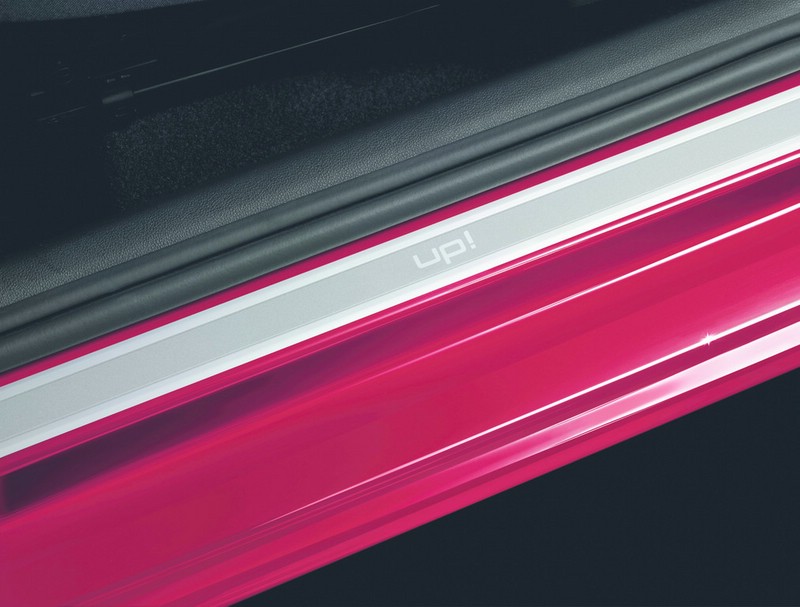 Volkswagen Cheer Up – Serienmäßig an Bord sind das Radio RCD 215 mit zwei Lautsprechern und der „Up“-Schriftzug in den Türeinstiegsleisten. Foto: Auto-Medienportal.Net/Volkswagen