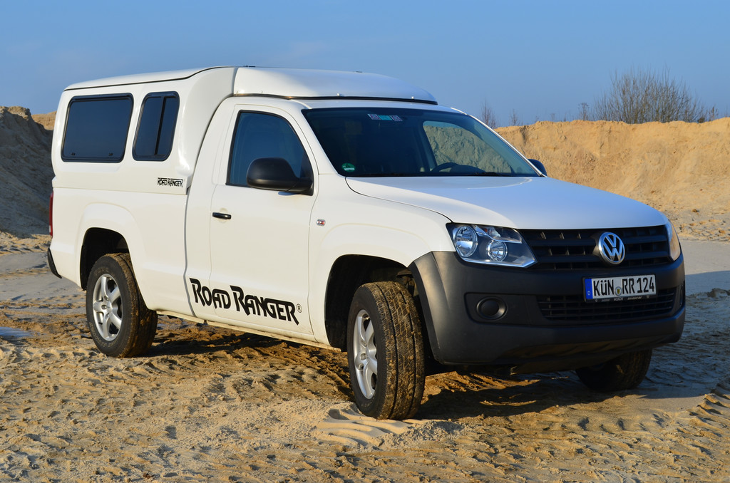 Seit 2010 erfreut der VW Amarok, der mittlerweile auch in Deutschland gefertigt wird, hierzulande die Fans der nützlichen Pick-ups. Dazu gehören nicht nur Förster und Jäger, Garten- und Landschaftsbauer, sondern auch „Urban-Cowboys“, die den Wagen rein privat nutzen und seine Vielseitigkeit schätzen. Denn ein Pritschenwagen mit Allradantrieb taugt für die Fahrt ins Stadt-Büro ebenso wie für den Großeinkauf im Baumarkt oder beim Biobauern auf dem Lande. Praktisch ist er auch für sportliche Aktivitäten aller Art, bei denen größeres Gerät – wie Karts, Quads, Bikes, Surfbretter oder Kites – transportiert werden muss. Selbst im Vergleich zu einem richtig großen Kombi eröffnen sich auf der Ladefläche eines Pick-ups schon nahezu unendliche Weiten. Eine Nutzung ganz anderer Art hatten die Campingspezialisten von Road Ranger und Robel. Ihr Traveler entstand als Gemeinschaftsproduktion auf Basis des Amarok mit Single Cab. Das Hardtop bietet bei geöffnetem Aufstelldach eine Stehhöhe von 190 Zentimetern und stammt von Road Ranger. Bei geschlossenem Dach liegt die Gesamthöhe des Traveler bei garagen- und alltagstauglichen 198 Zentimetern. Das ist wichtig für all jene Zeitgenossen, die nicht über eine geräumige Scheune auf dem Land verfügen.