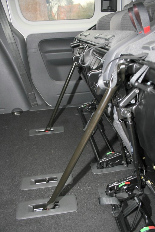 Nicht ganz überzeugen kann ebenfalls die Metallstütze zur Arretierung der geteilt hochklappbaren Rücksitzbank. Sie ragt viele Zentimeter nach hinten und raubt so Platz vom gerade erst gewonnenen zusätzlichen Stauraum. Doch für größere Transportaufgaben lassen sich die Sitze zum Glück auch ganz ausbauen, wenngleich schon der rechte Einzelsitz ziemlich schwer ist. Foto: Auto-Medienportal.Net