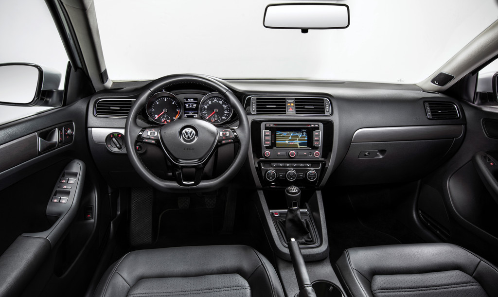 VW Jetta Facelift 2015: Der neue Jetta präsentiert seine neuen Rundinstrumente in Tubenoptik, bekommt die neue Lenkradgeneration spendiert und glänzt mit Chrom und Klavierlack. Sein Ambiente signalisiert den kleinen Luxus; der Jetta präsentiert sich als die geräumige, aber mit 4,66 Metern Länge immer noch kompakte Limousine für den anspruchsvolleren Fahrer. Foto: Auto-Medienportal.Net/Volkswagen