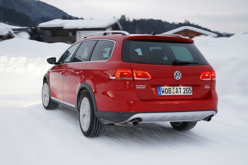Der Passat Alltrack ist mit 4771 Millimetern genauso lang wie der Passat Variant. In der Breite ergeben sich trotz der Radhausverbreiterungen ebenfalls identische 1,82 Meter. Gegenüber dem Variant wurde die Bodenfreiheit von 135 auf 165 mm erhöht. Der vordere Böschungswinkel vergrößerte sich von 13,5 auf 16 Grad; hinten ergibt sich ein Sprung von 11,9 auf 13,6 Grad. Abseits befestigter Straßen nicht weniger wichtig ist der Rampenwinkel beim Überqueren eines Hügels; hier verbesserte sich der entsprechende Wert von 9,5 auf 12,8 Grad.