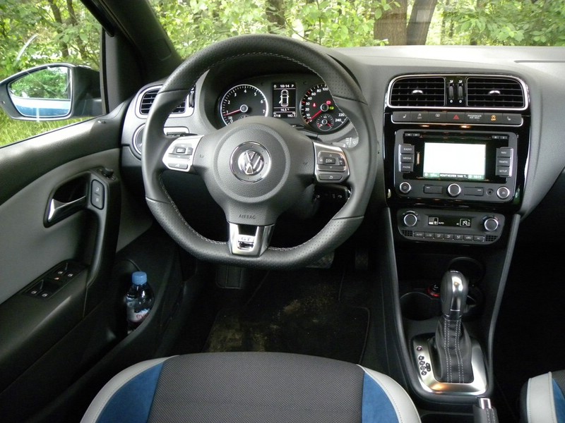 Volkswagen Polo Blue GT: In der Innenausstattung für der Blue GT in vielen Teilen dem GTI-Vorbild: Multifunktionsanzeige, GTI-Instrumente, Geschwindigkeitsregelanlage, schwarzer Dachhimmel und schwarze Säulen und das Multifunktions-Lederlenkrad. Foto: Auto-Medienportal.Net