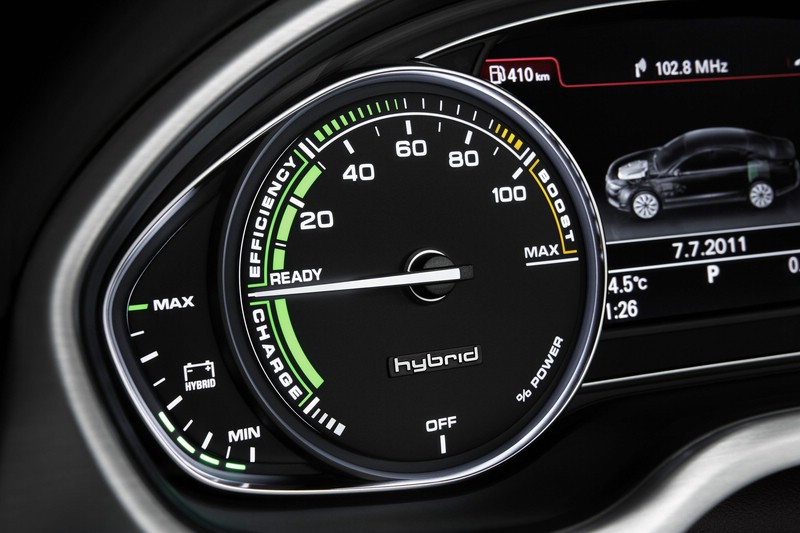 Das Powermeter des Audi A8 hybrid liefert die nötigen Infos, wie effizient man unterwegs ist. Foto: Audi/Auto-Reporter.NET