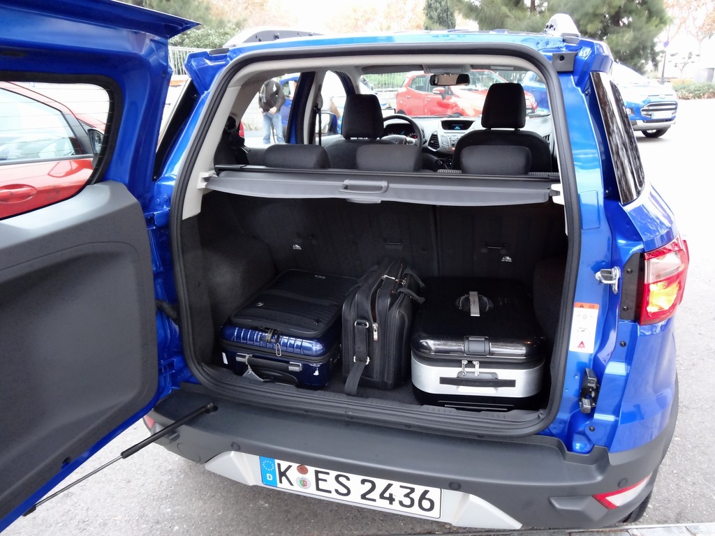 Ford Ecosport: Der Kofferraum lässt sind auf rund 1240 Liter vergrößern, hält sich aber bei aufgestellten Rückenlehnen mit 375 Litern bei nach vorn geschobener Rücksitzbank in den Klassennormen. Foto: Auto-Medienportal.Net