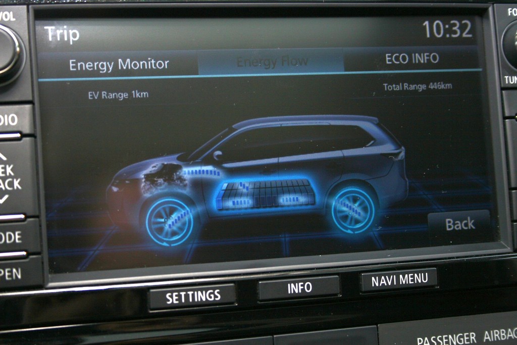 Mitsubishi Outlander PHEV im Test: Wir kamen auf einer ersten rund 75 Kilometer langen Ausfahrt mit Autobahn und kurvigen Bergstraßen auf 67 Prozent Elektroanteil (inklusive Generatorbetrieb) und einen Durchschnittsverbrauch laut Bordcomputer von 5,0 Litern. Foto: Auto-Medienportal.Net