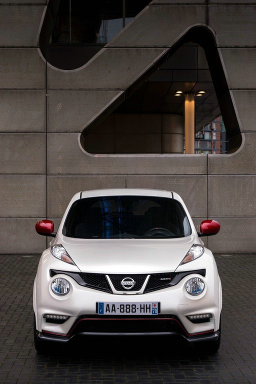 Das Juke-Design polarisiert. Im Vergleich zum Serien-Juke wurde beim Nismo die Frontpartie weiter heruntergezogen und aggressiver gestaltet. Die Luftversorgung übernimmt jetzt ein horizontaler Grill mit Gittereinsatz. Foto: Auto-Medienportal.Net/Nissan