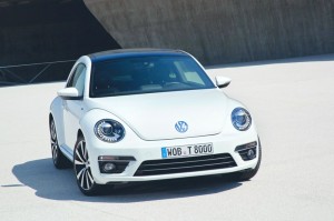Beetle R-Line: Zum Exterieur-Paket gehören vordere Stoßfänger mit schwarz genarbten, eigenständigen Lufteinlässen, Blinkerrahmen in Crom sowie ein Diffusor, Seitenbeplankungen und Außenspiegelgehäuse in Wagenfarbe. Foto: Auto-Medienportal.Net/Volkswagen