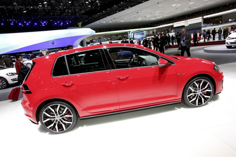 Volkswagen Golf GTI in Genf: Die Karosserie auf Basis des Golf VII nimmt zahlreiche GTI-Designzitate neu auf – allen voran die typischen roten Zierstreifen. Foto: Auto-Medienportal.Net/Manfred Zimmermann