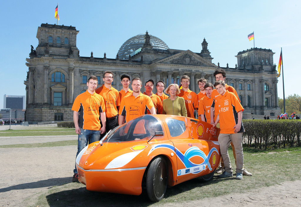 Schon bisher gab es beim Eco-Marathon beeindruckende Ergebnisse: In der Spitze ist hochgerechnet bereits eine Strecke von Deutschland bis nach Nordafrika erreicht worden. In diesem Jahr sind 228 Teams aus 30 Ländern in Europa und Afrika für den Wettkampf vom 21. bis 24. Mai in Rotterdam (Niederlande) qualifiziert. Zwei Teams aus Neuruppin (Brandenburg) präsentierten Bundesministerin Wanka stellvertretend für die deutsche Delegation heute am Reichstag in Berlin ihre Fahrzeuge und ihre Entwicklungsarbeit.