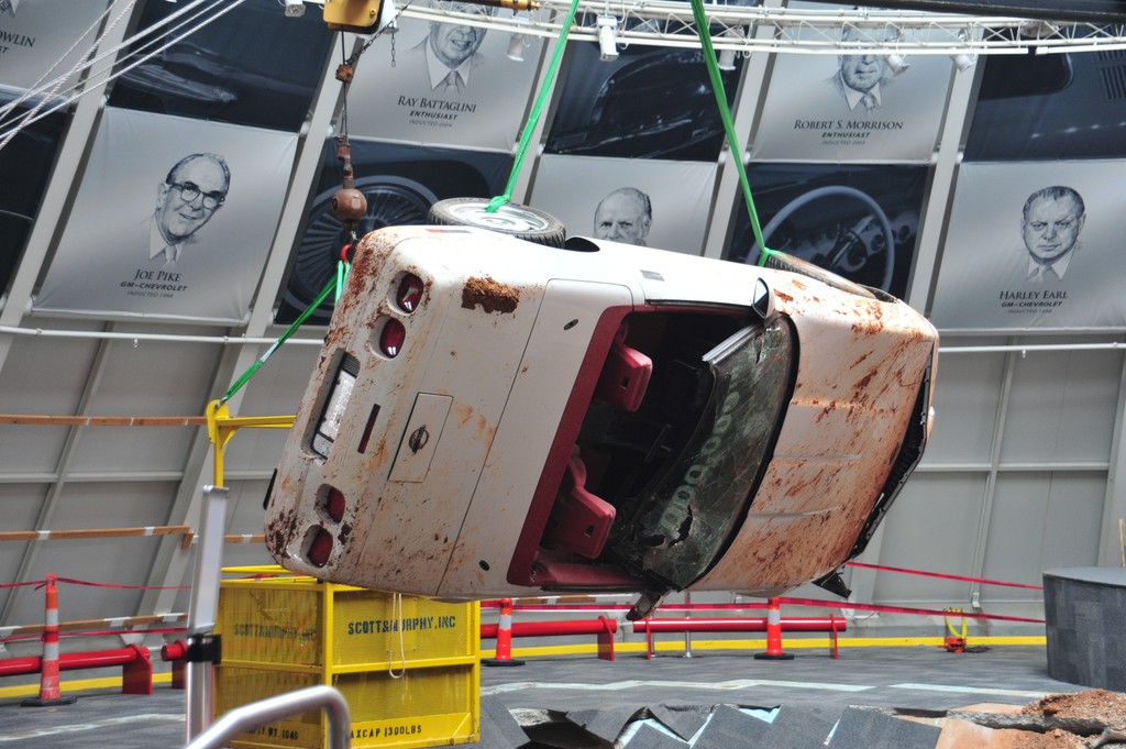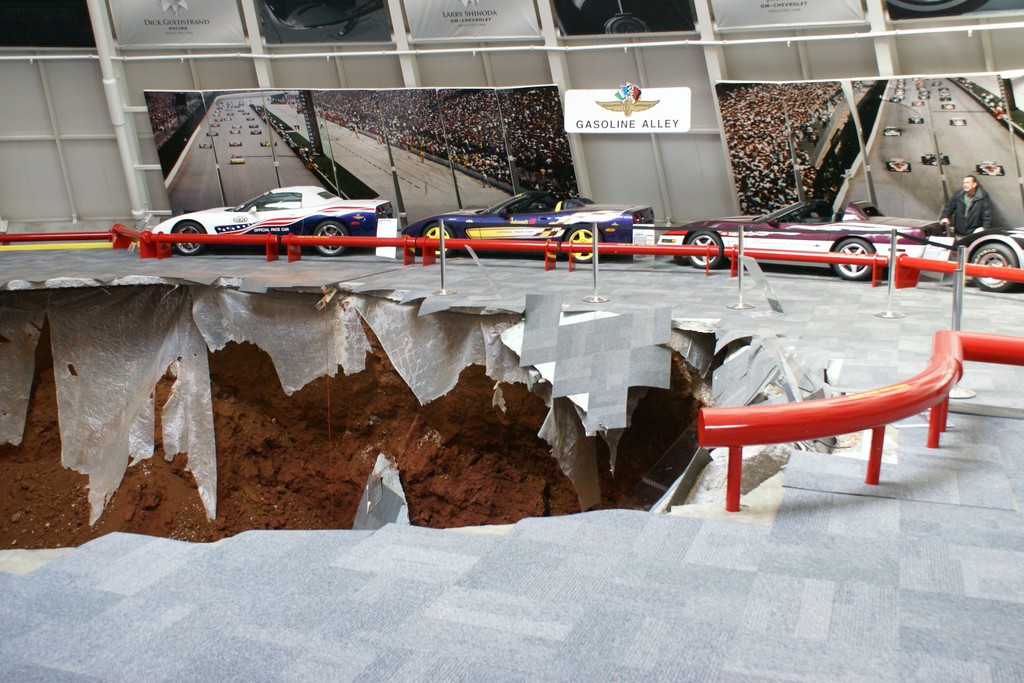 Am 2. Juli 1992 rollte in Bowling Green, US-Bundesstaat Kentucky, die einmillionste Chevrolet Corvette vom Band. Danach wanderte sie unverzüglich ins benachbarte National Corvette Museum. 22 Jahre später, am 12. Februar 2014 morgens um 5.44 Uhr, ereilte sie dort das Schicksal. Zusammen mit sieben Markenkolleginnen versank sie in einem durch einen Erdrutsch ausgelösten 13 Meter breiten und bis zu 20 Meter tiefen Krater und löste weltweit Trauer und Entsetzen unter Corvette-Fans aus. Denn das Auto war platt.